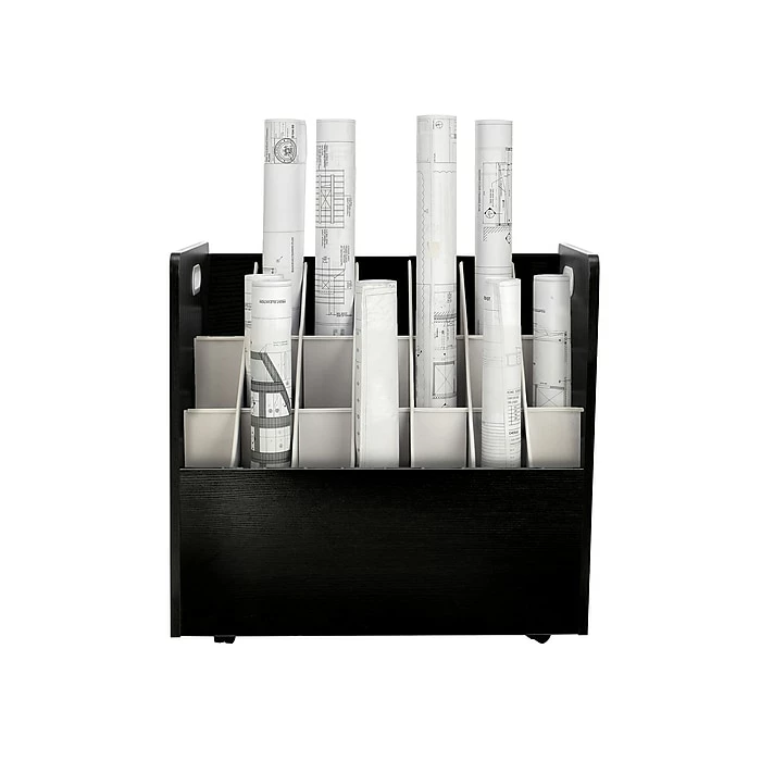 - 21-compartment roll file easily holds your plans and rolled-up documents of up to 3.75″Dia.