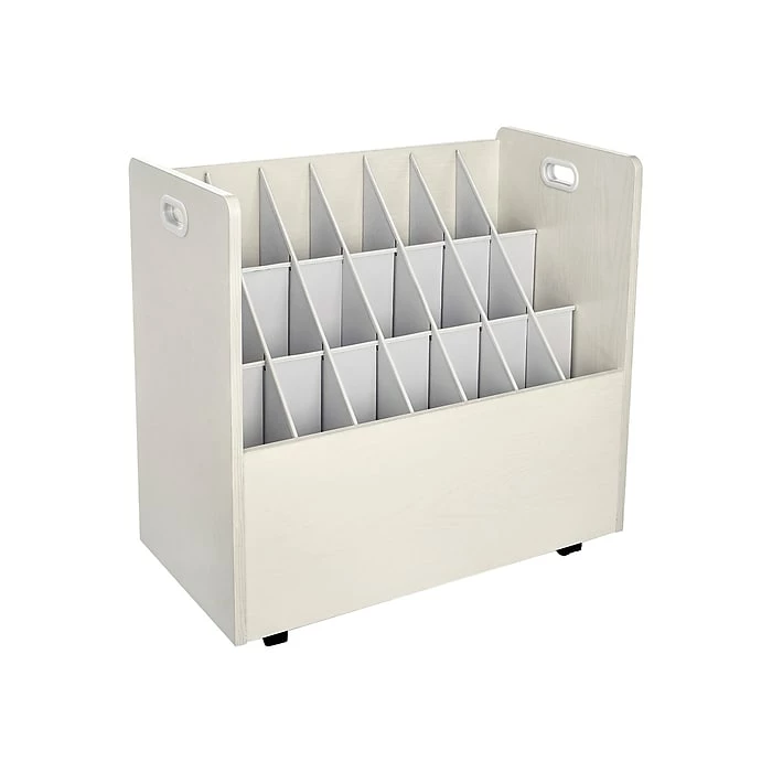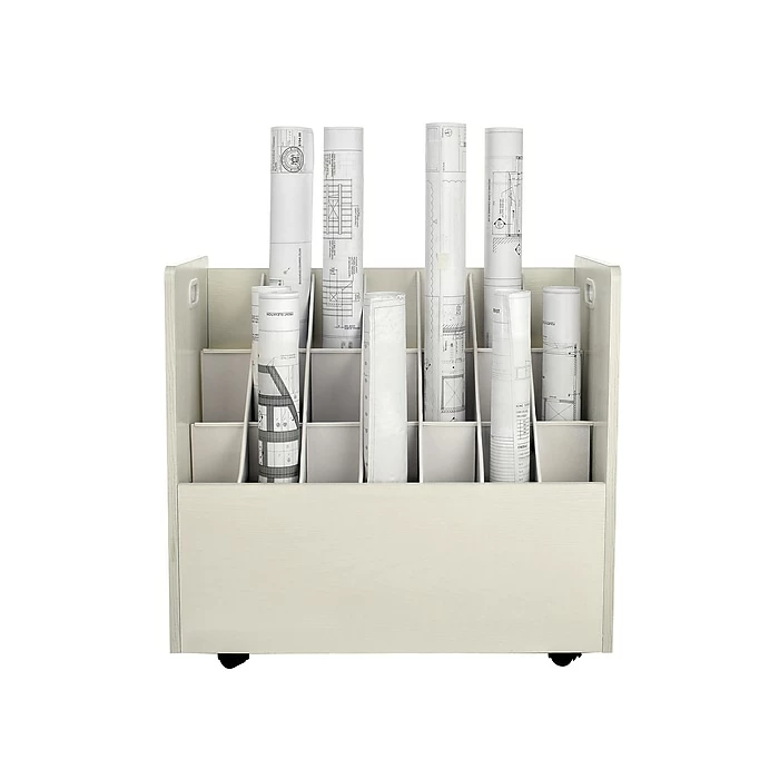 Now it’s easy to multitask. With this easily mobile roll file, you can most efficiently deal with your various works in progress. Chic and solid, the cabinet features 2″ swivel casters for ease of portability, a lovely vinyl laminate finish, and 21 square 3.75″ compartments that hold your plans or rolled documents snugly. The perfect organizational solution. And assembly is a cinch.