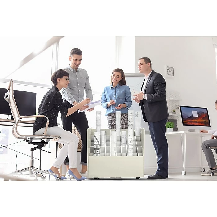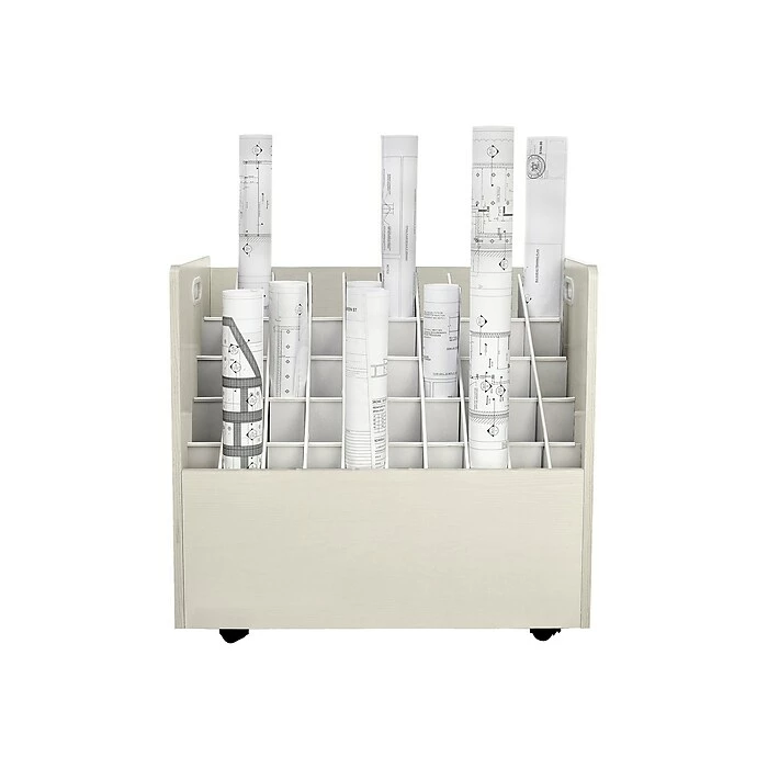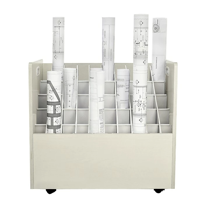 - CONVENIENT DESIGN. A perfect storage area for rolled-up maps, blueprints, plan drawings and other large-format documents, this upright roll file provides easy access to active documents in one compact and sturdy package.