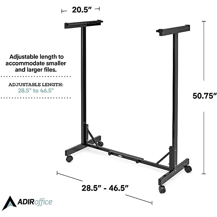 - EXPANDABLE MOBILE PLAN CENTER. Measuring 51 H x 47 L x 20.5 D with an adjustable length from 29 to 47 inches, this black mobile rack will effectively store your larger files with ease.