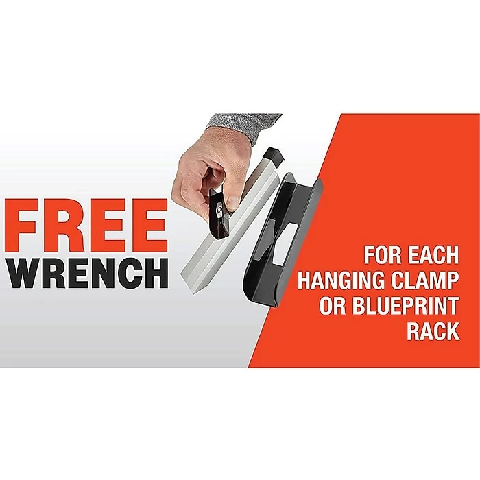 - CONVENIENT DESIGN. Accommodating up to 18 clamps, simply clip your files together in the paper clamps and drop them into the top bracket for quick access to your hanging blueprints. Only one size of hanging clamps can be placed into this mobile blueprint stand at a time.