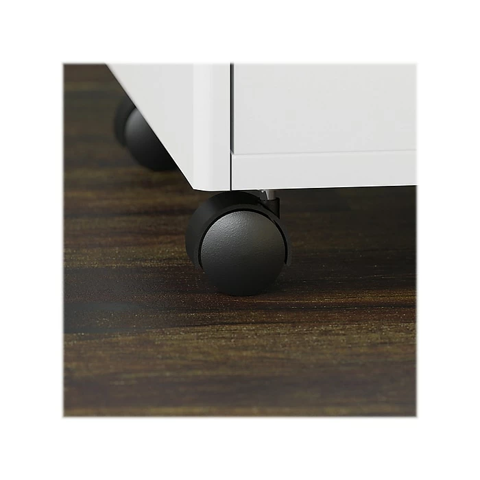 - Portable file cabinet rolls on dual-wheel casters and is finished on all sides for versatile placement