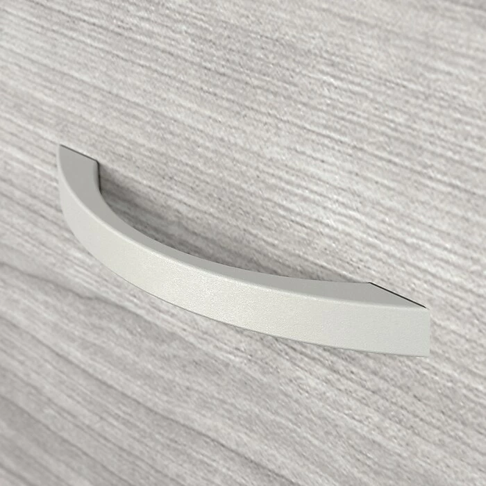 - Made of engineered wood in a platinum gray finish