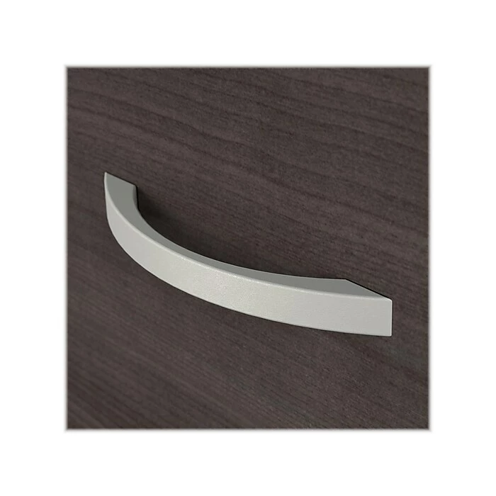 The Bush Business Furniture Hybrid two-drawer lateral file cabinet with shelves offers a stylish, long-lasting storage solution for the modern professional. Keep all your letter-, legal-, and A4-size documents organized inside the two drawers that open on full-extension ball bearing slides for an effortless reach to contents. A single lock secures both drawers to protect files with sensitive information and safeguard any personal items you don’t want left out in the open. Each drawer can hold up to 75 lbs. of materials. The open shelves are perfect for storing books or giving your office a personal touch with plants, pictures, and decorations. The bookshelf file cabinet’s stable design and included wall attachment hardware make it a safe choice for use in virtually any home or professional office environment. Find the perfect look for your space with five contemporary finish options: black walnut, modern hickory, platinum gray, storm gray, and white. This bookcase with drawers has been meticulously tested to meet or exceed ANSI/BIFMA quality standards for safety, durability, and performance and is backed by the Bush Business Furniture 10-year manufacturer warranty. See the full Bush Business Furniture Hybrid collection for coordinating items to enhance your workspace as needed, including computer desks, bookcases, and storage cabinets (coordinating items sold separately). American-made with US and imported parts.