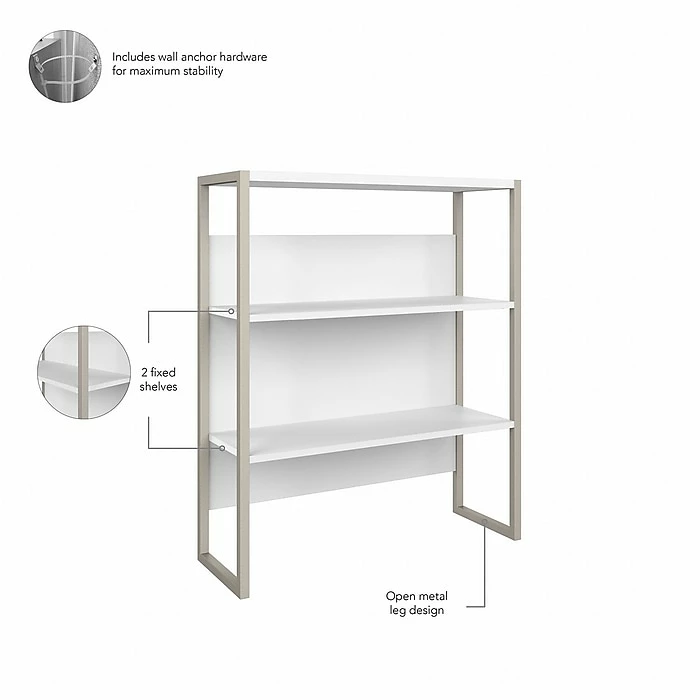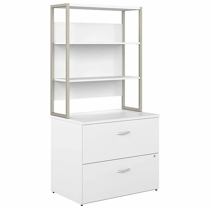 - Bundle includes: two-drawer lateral file cabinet, 36″W bookcase hutch