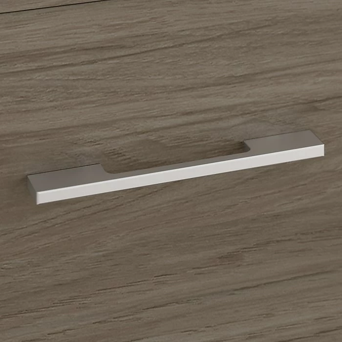 - Available in your choice of stylish Black Walnut, Sand Oak, Modern Hickory and Storm Gray finishes with Light Silver drawer pulls
