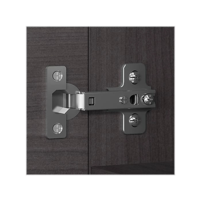 - Made of thermally fused laminate over composite wood in a storm gray finish