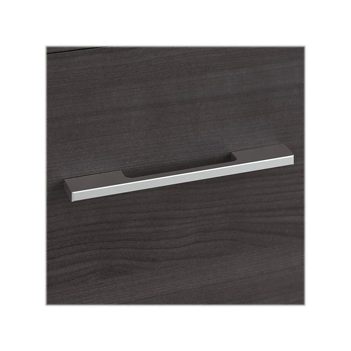 - Available in your choice of stylish black walnut, sand oak, modern hickory, and storm gray finishes with light silver hardware