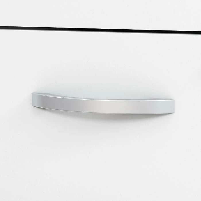 - Brushed Nickel hardware complements the White or Storm Gray finish to complete the contemporary look