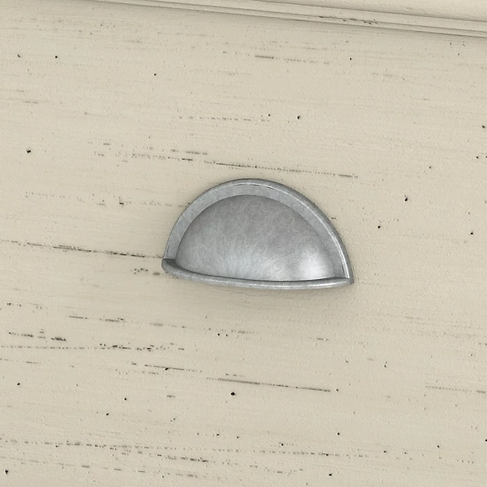 - Antique Pewter hardware pairs with distressed finish to create a modern farmhouse look