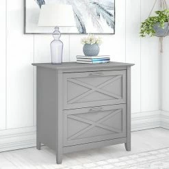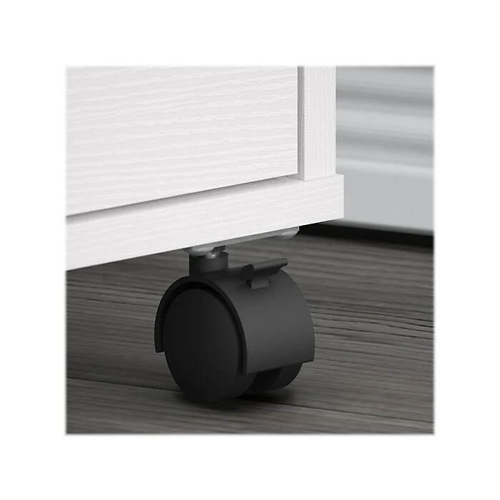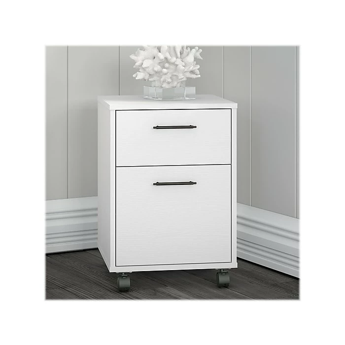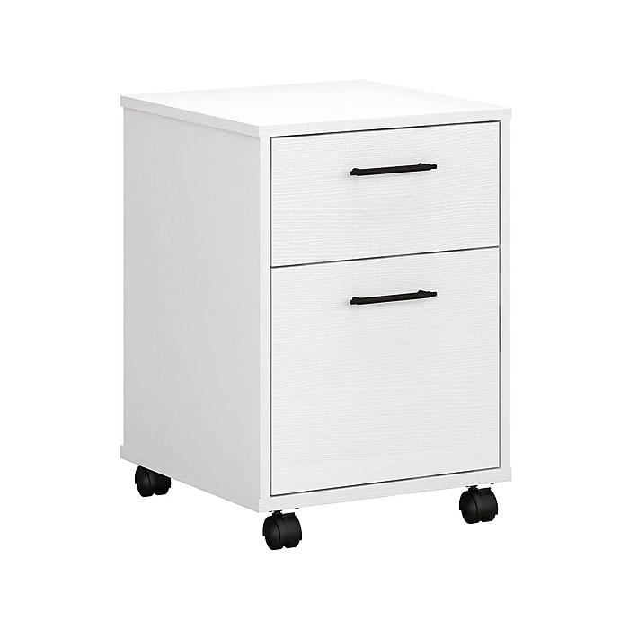 Enjoy refreshingly casual style as you organize paperwork and small office supplies with the Bush Furniture Key West two-drawer mobile file cabinet. This mobile file cabinet combines modern functionality and space efficiency to offer a perfect storage solution for your home office. A convenient box drawer organizes writing utensils, notepads, and more so the supplies you need are never out of reach. The file drawer opens on smooth full-extension ball bearing slides for easy access to letter-size paperwork. This rolling file cabinet features locking front casters for secure placement and is finished on all sides to look great facing any direction. At 22″H x 16″W x 16″D, the two-drawer filing cabinet fits conveniently under a coordinating Bush Furniture Key West desk (sold separately) to create an all-in-one personal workspace. This file cabinet is tested to meet ANSI/SOHO quality standards for safety and performance and is backed by the Bush Furniture 1-year manufacturer warranty.