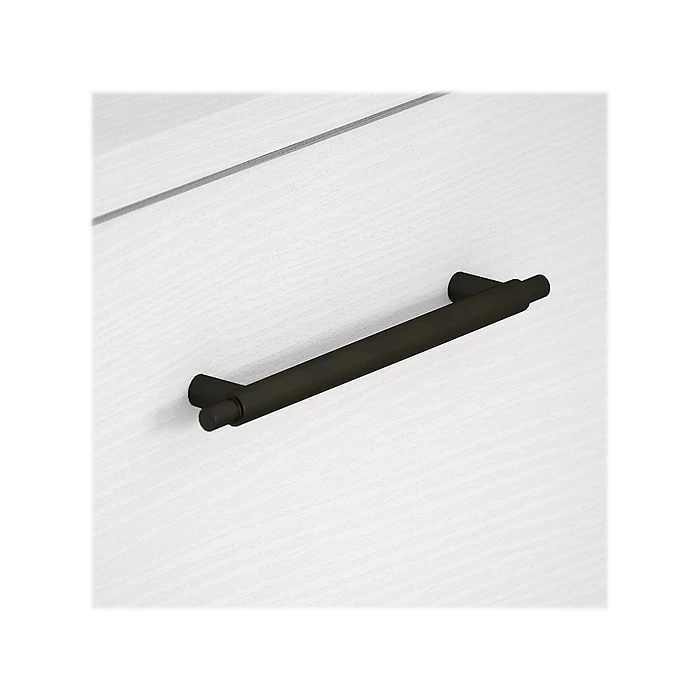 - Aged bronze handles add to the relaxed style of this two-drawer file cabinet