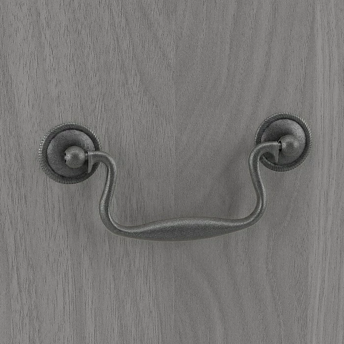 - Available in linen white oak or modern gray with distressed iron hardware and in harvest cherry with gold-finished brass hardware