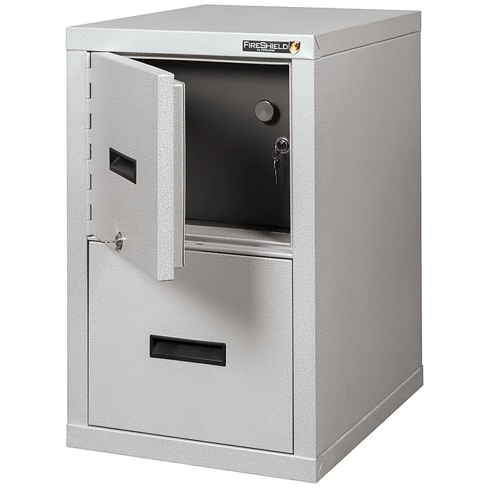 - One file drawer + one 1.3 cubic foot safe cam lock