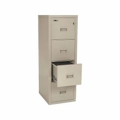 Store important paperwork in this FireKing vertical four-drawer fire-resistant file cabinet. The integrated lock prevents unauthorized access to sensitive documents, while the four spacious drawers maximize file storage space. A UL two-hour fire rating and water-resistant design defends your documents from damage during emergencies. This FireKing vertical four-drawer fire-resistant file cabinet boasts durable metal construction to withstand everyday wear and tear.