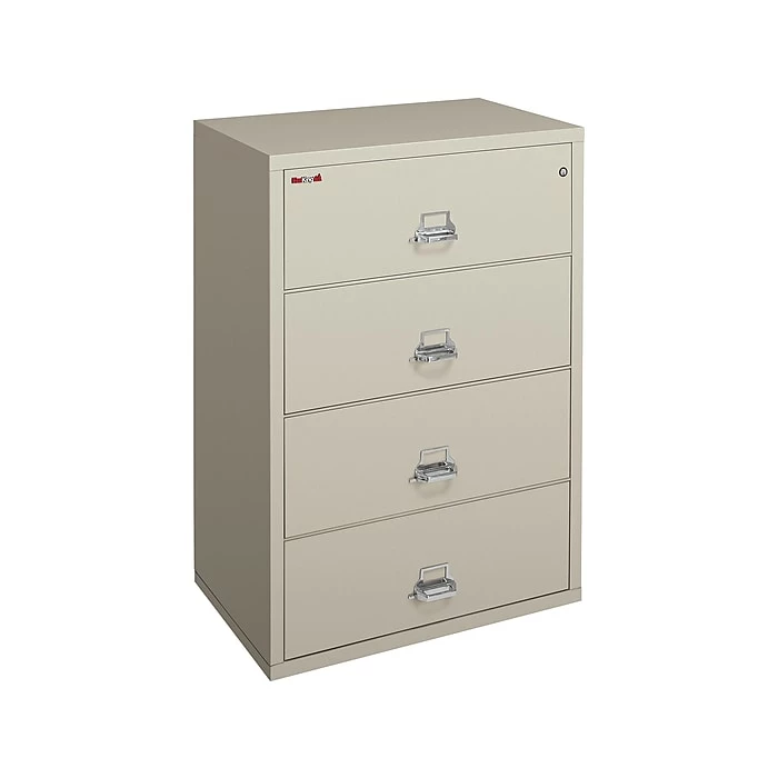 Use this heavily insulated file cabinet to organize letter- and legal-size folders. The inter-drawer insulation of this cabinet keeps files safe in the event of a fire, and the high-security key lock ensures that documents are for your eyes only. This lateral file cabinet comes equipped with water-resistant technology, which prevents water from damaging files. With four roomy drawers, this FireKing file cabinet offers enough space to store essential papers for optimum organization.