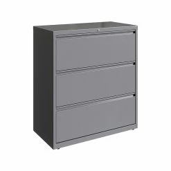 This 36″ wide three-drawer commercial-grade lateral file cabinet is designed for heavy-duty use, yet looks great in any office. Precision ball bearing suspension allows for quiet use in your busy office environment. The nonporous surface is easy to clean and disinfect. The interlock system prevents tipping by only allowing one open drawer at a time. Dual lock bars and a core-removable lock come standard.