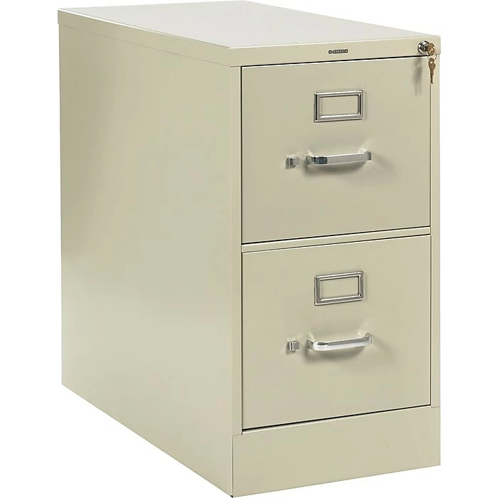 HON 210 Series vertical file cabinet in putty color measuring 29″ x 15″ x 28 1/2″ features two drawers to offer extra storage space for file folders. Cabinet has a tilt and slide follower block in each drawer keeping files upright and neat.