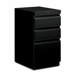 - HON® Brigade® Mobile Pedestal features three file and box drawers that accommodate letter size files