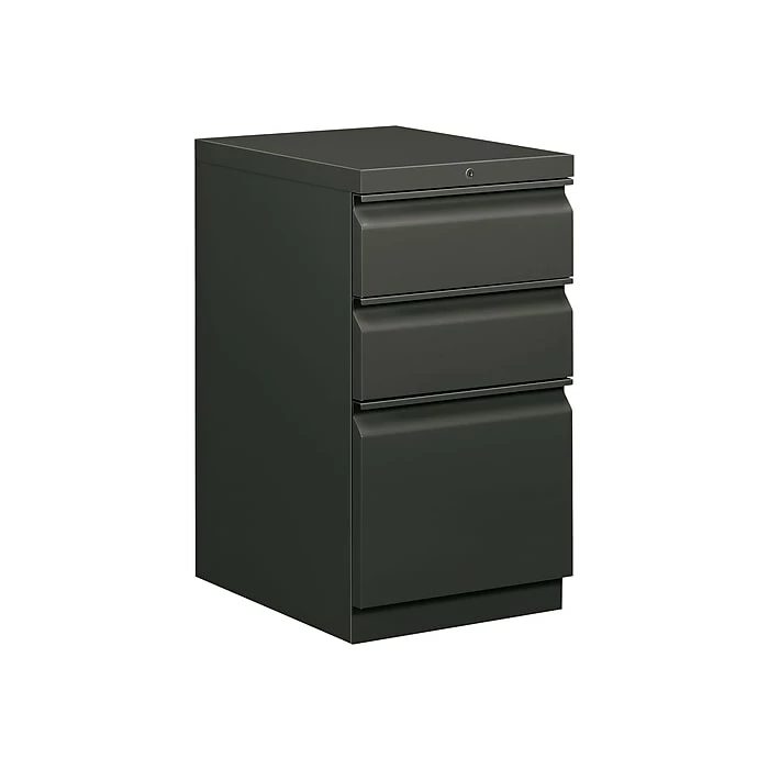 Organize a work space with this office mobile-pedestal cabinet. Three box drawers with ball bearing suspension provide easy-access storage for office supplies, and the file drawer at the bottom allows for organization of documents and hanging file folders. Place this 15-inch HON Brigade cabinet under your desk, move it easily with its swivel back casters, and lock it before leaving your desk.