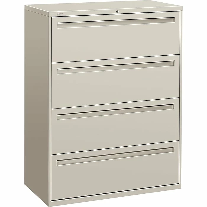 HON® Brigadeâ„¢ 700 Series 42″ Lateral file cabinet in light gray color features steel ball bearing drawers that can be operated easily and quietly. Cabinet consists of mechanical interlock and measures 53 1/4″ x 42″ x 19 1/4″.