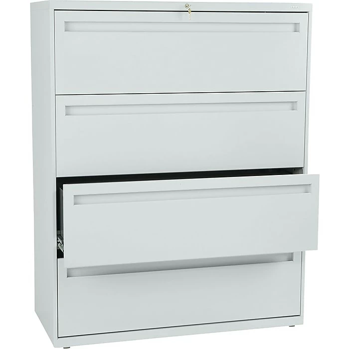 - 4-drawer lateral file accommodates letter- or legal-size files