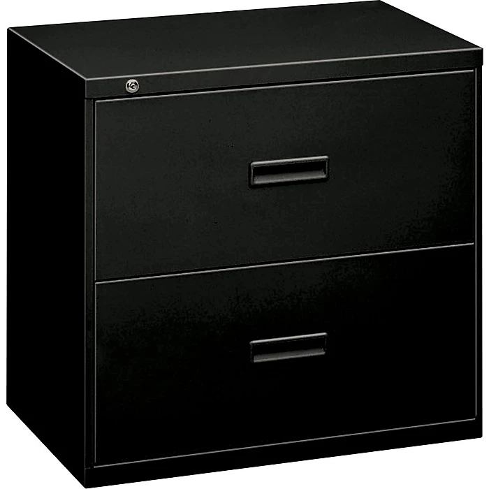 This two-drawer, 30″W model has a tamper-resistant enclosed base. Cabinet accepts letter or legal hanging file folders. Molded polymer handle is standard. Finish color is Black.