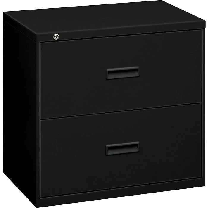 This two-drawer, 36″W model has a tamper-resistant enclosed base. Cabinet accepts letter or legal hanging file folders. Molded polymer handle is standard. Finish color is Black.
