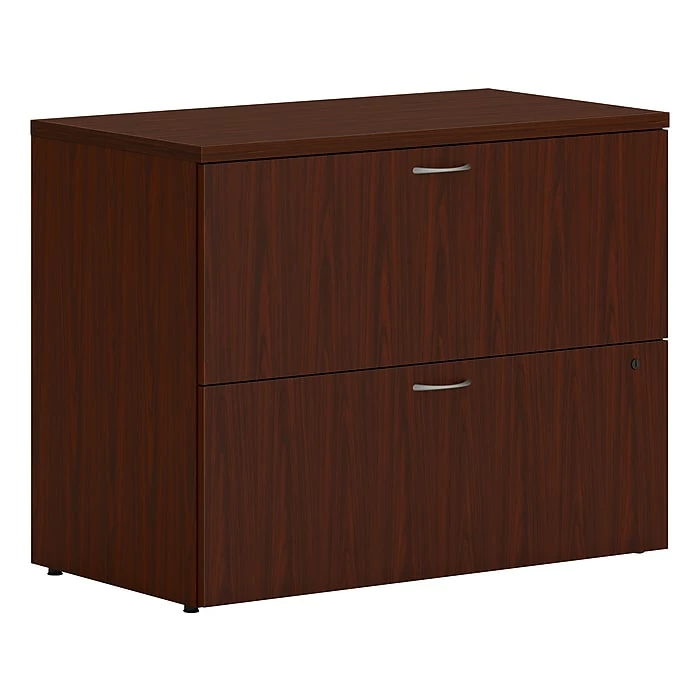 There is always beauty in simplicity, but with the HON Mod desk collection, you’ll also find variety and value. This 36″ two-drawer lateral file cabinet can stand alone, or the top can be removed to convert it to a support pedestal for a Mod desk or credenza shell. It increases the storage capacity of a workstation and features ball bearing drawer suspensions for quiet, smooth operation. Each drawer accepts letter or legal paperwork, as well as hanging folders. The durable laminate surface is available in a variety of attractive finish options, which allows you to match other Mod elements. It’s totally productive. Totally adaptable.