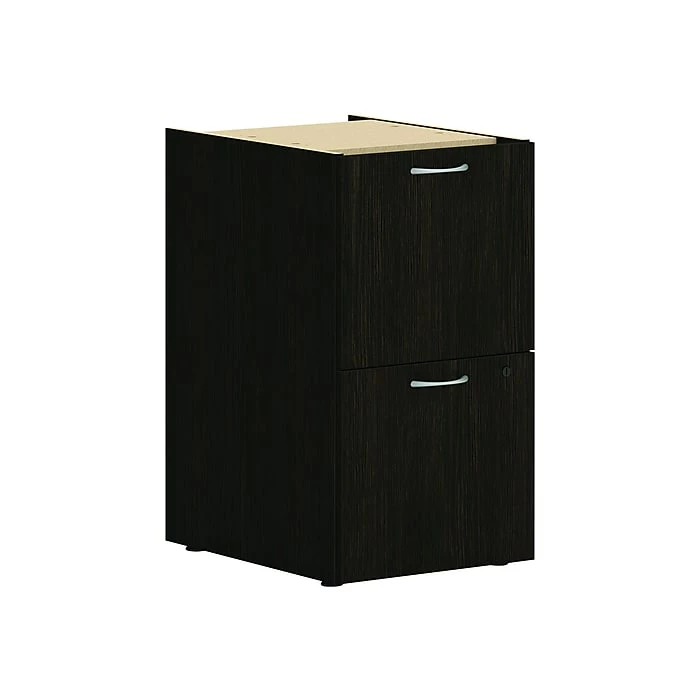 - Two-drawer support pedestal cabinet holds letter- or legal-size documents