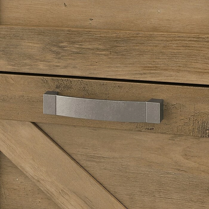 The kathy ireland Home by Bush Furniture Cottage Grove two-drawer lateral file cabinet offers a practical storage solution with appealing modern farmhouse style. Take advantage of two large file drawers to keep letter-, legal-, and A4-size paperwork organized in your home office. The drawers support up to 50 lbs. of materials each and are designed to open one at a time for maximum stability on any surface. Full-extension ball bearing slides provide an effortless reach to contents, even those all the way at the back. The two-drawer file cabinet matches the height of kathy ireland Home by Bush Furniture Cottage Grove 48″ writing desk and 60″ L-shaped desk to create an extended work surface when placed side by side. This two-drawer lateral file cabinet has been tested to meet ANSI/SOHO standards for safety and performance and is backed by a 3-year manufacturer warranty. See the full collection for coordinating items available.