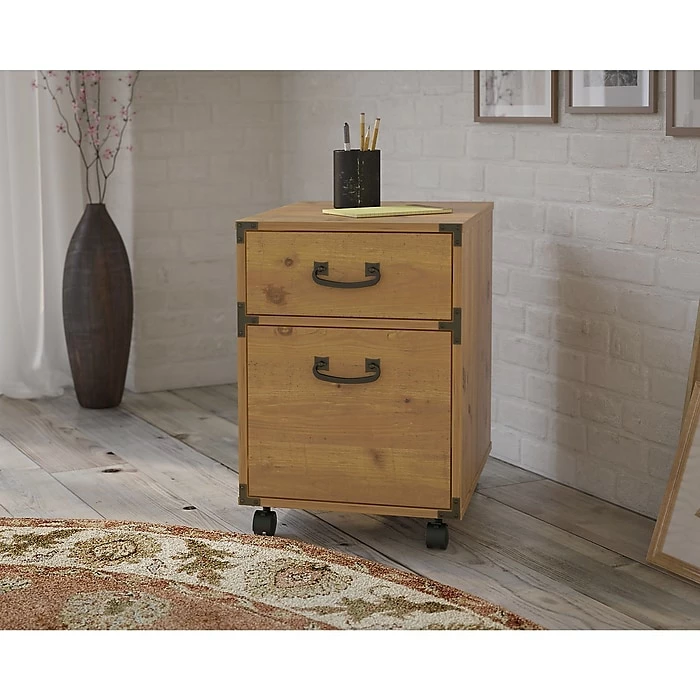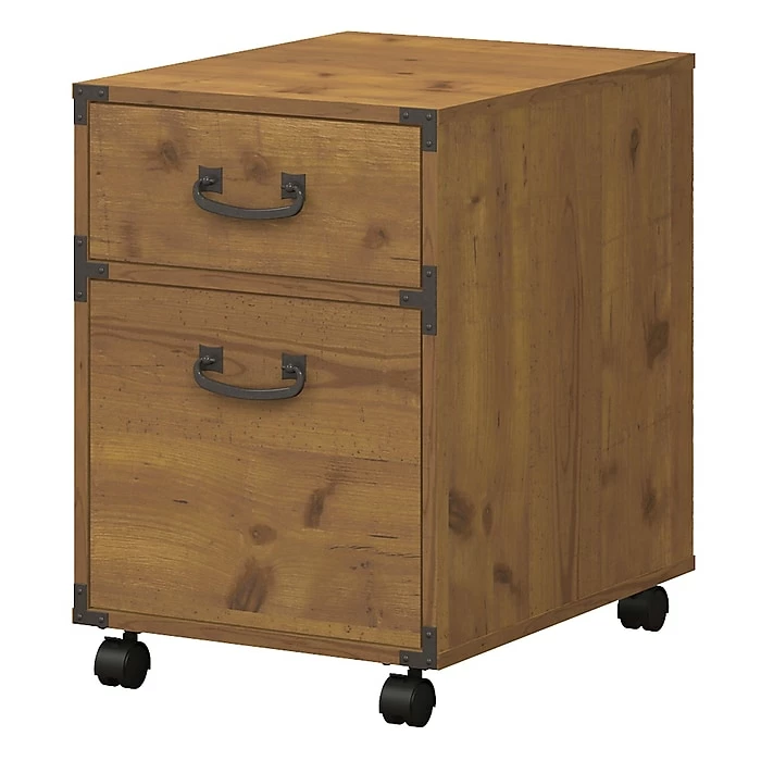 Capture a sense of heritage with the kathy ireland® Home by Bush Furniture Ironworks 2 Drawer Mobile File Cabinet with flexible storage solutions to keep you organized. Mobile Pedestal features full-extension ball bearing slides on the file drawer for easy access to materials. Accommodates letter, legal and A4 file formats. Keep important papers neatly organized. Casters make it easy to roll from side to side, or simply store beneath the Writing Desk (sold separately) for space efficiency. The locking casters offer secure placement for filing and safety for a compact, yet flexible storage solution. Construction meets ANSI/SOHO furniture standards for strength and durability for affordable home furnishings backed by a 3 Year Manufacturer’s Warranty. See the full Collection for coordinating items available.