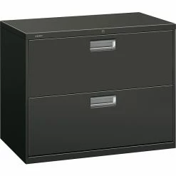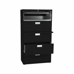 HON Brigade 600 Series 4-Drawer Lateral File Cabinet, Locking, Letter/Legal, Black, 42″W (HON694LP)