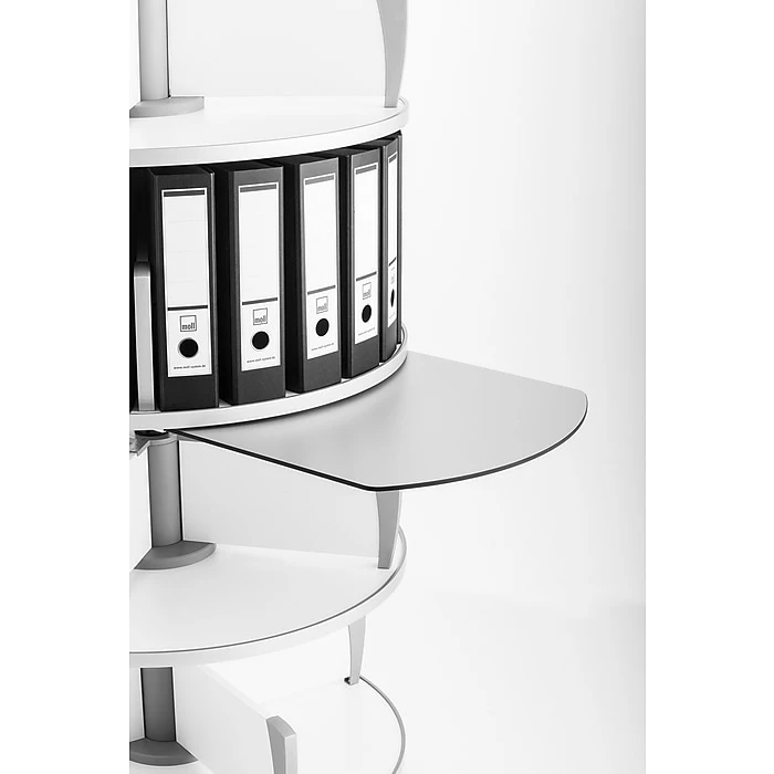 Moll® Pull out shelf for binder and file storage carousel is made up of plastic material. Carousel saves 50 percent of the floor space required by typical bookcase or shelving units.