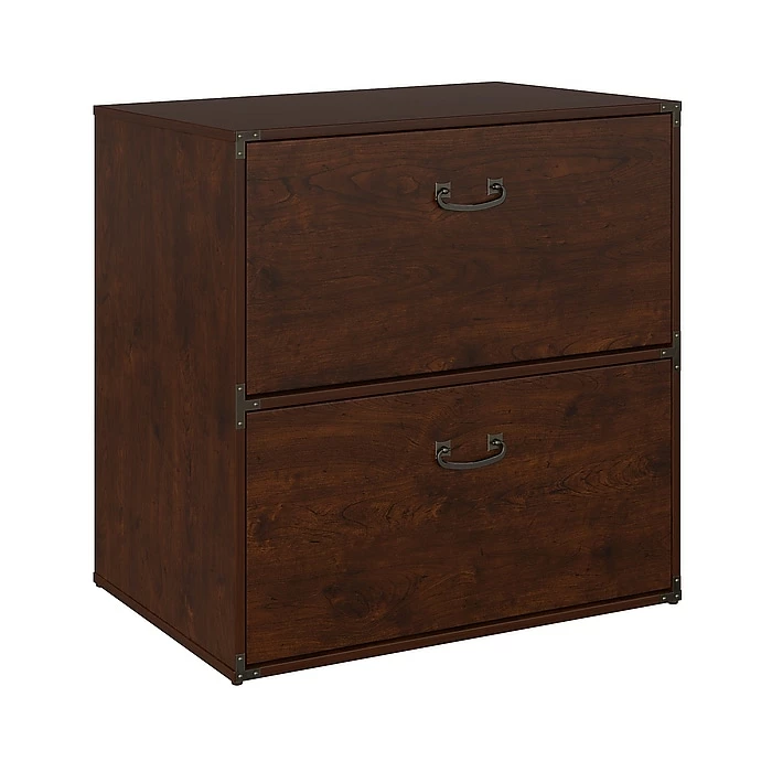 The authentic industrial design of the Office by kathy ireland® Ironworks Lateral File Cabinet captures a sense of heritage in your home. The Ironworks Collection combines a beautiful distressed surface with Aged Bronze steel bail drawer pulls for a wonderfully unique and lasting charm. The Lateral File Cabinet features two generously sized file drawers that accommodate letter and legal-sized documents to organize important papers. Full-extension ball bearing slides offer easy access to materials. Coordinates with matching Ironworks Desk (sold separately). Construction meets ANSI/SOHO furniture standards for strength and durability for affordable home furnishings backed by a 3 Year Manufacturer’s Warranty. And for a total office solution, see the full Collection for coordinating items available.