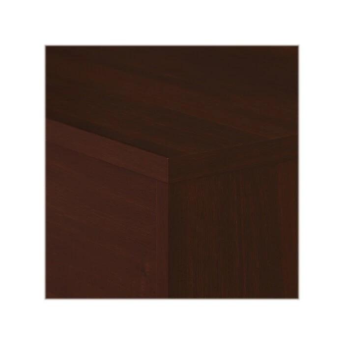 - Durable file cabinet is constructed of 100% thermally fused laminate in a century walnut finish with titanium-finished hardware