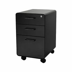 Poppin Stow 3-Drawer Vertical File Cabinet, Locking, Letter/Legal, Black, 20″D (101390)