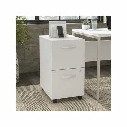 Bush Business Furniture Hybrid 2-Drawer Mobile File Cabinet, Letter/Legal, White, 20″ (HYF116WHSU-Z)