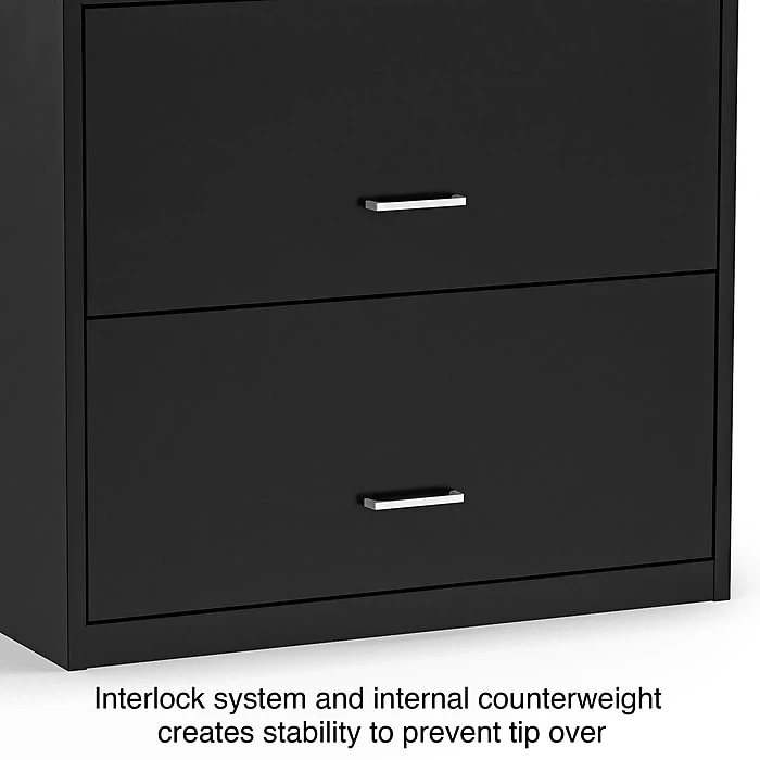 Expand your business filing system with this light duty lateral file cabinet. Two generously sized drawers offer ample space for organizing and storing paperwork, while the keyed lock keeps sensitive paperwork stored securely inside. The durable metal construction stands up to frequent use in your home office or smaller professional workspace. Each drawer accepts letter-size file folders, so you can store a wide range of documents in this black two-drawer file cabinet.