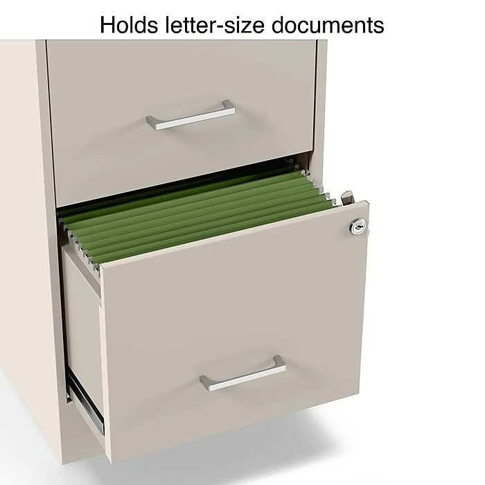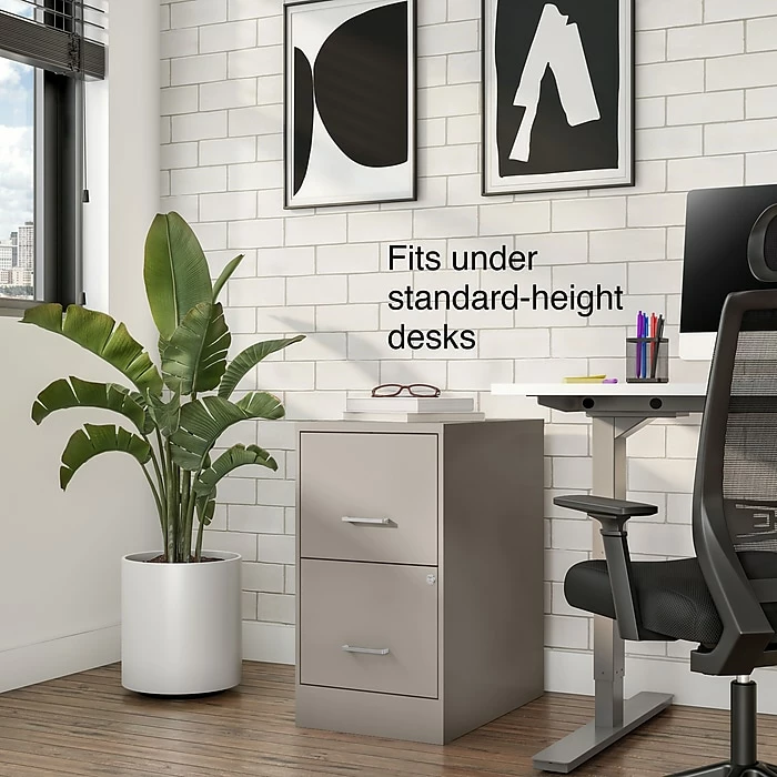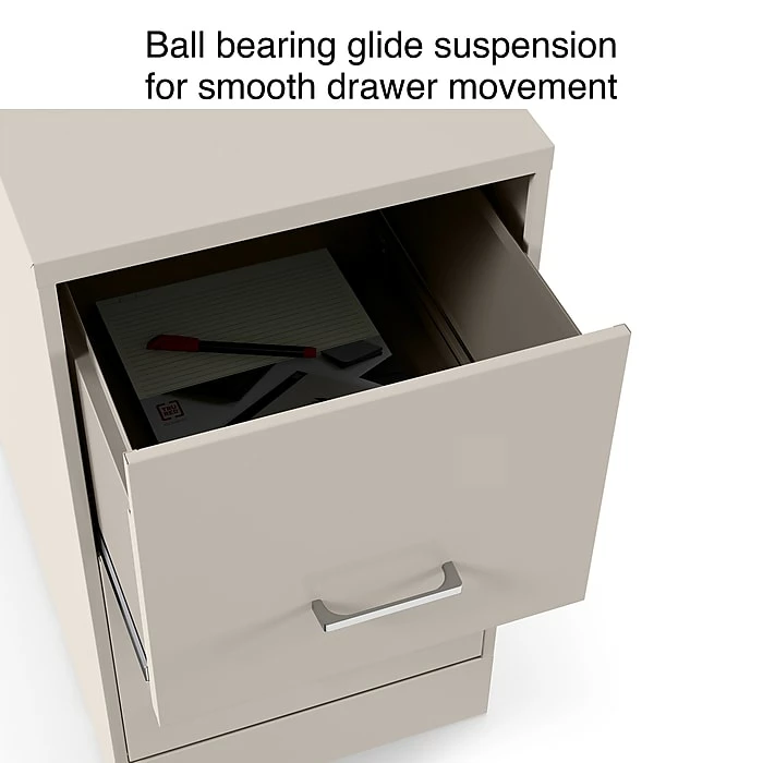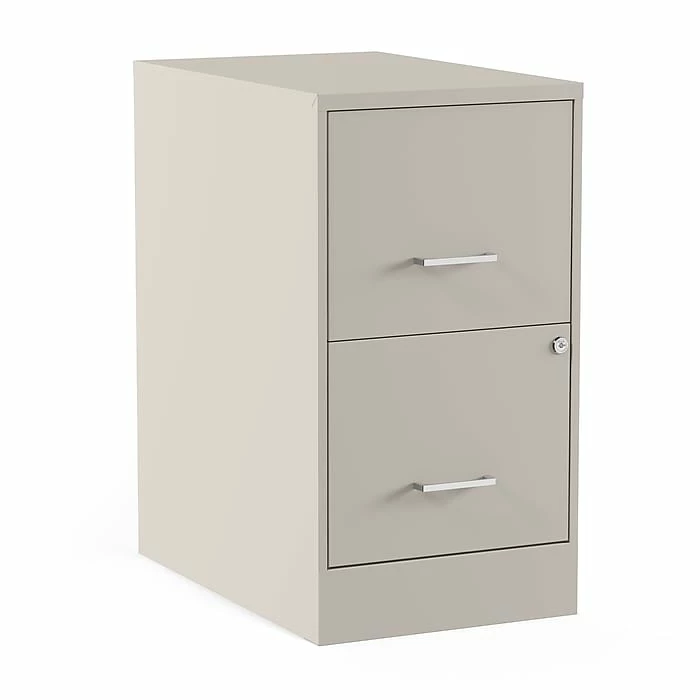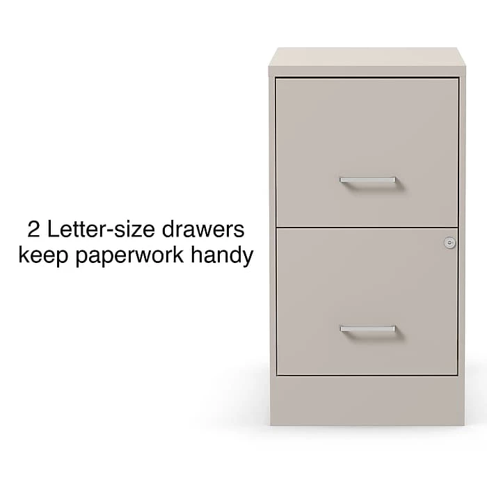 Organize file folders in this mobile light duty file cabinet, which features a sleek putty finish and silver-tone hardware. A single keyed lock secures the two drawers, restricting access whenever you step away from your desk. Each letter-size drawer accommodates hanging folders, keeping files neatly aligned and easily searchable. This cabinet boasts rolling casters, so you can roll your files throughout the office. With its compact size, this vertical file cabinet is ideal for use in small spaces.
