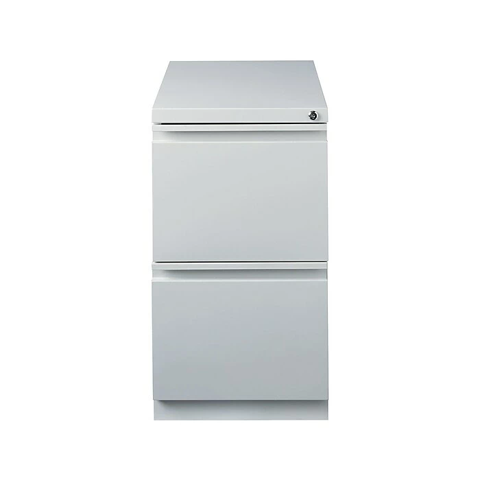 Store important documents and keep your workplace organized with this two-drawer mobile pedestal file cabinet. The two deep drawers accommodate large numbers of letter-size documents and have steel ball-bearing suspensions for smooth, easy operation. Featuring a compact design, this cabinet takes up minimal floor space and has concealed casters for easy portability. This two-drawer pedestal file cabinet enhances existing decor with its light gray finish, sleek design and recessed drawer fronts.