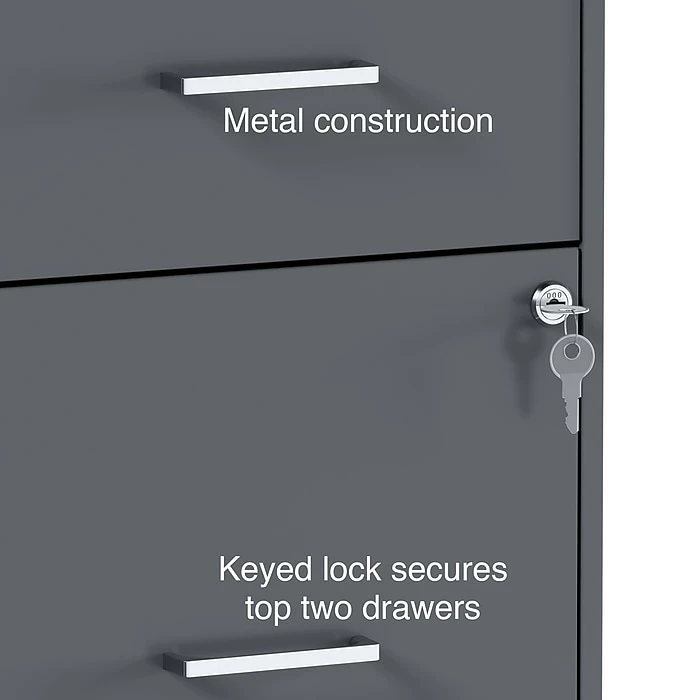 - Single lock secures top 2 drawers