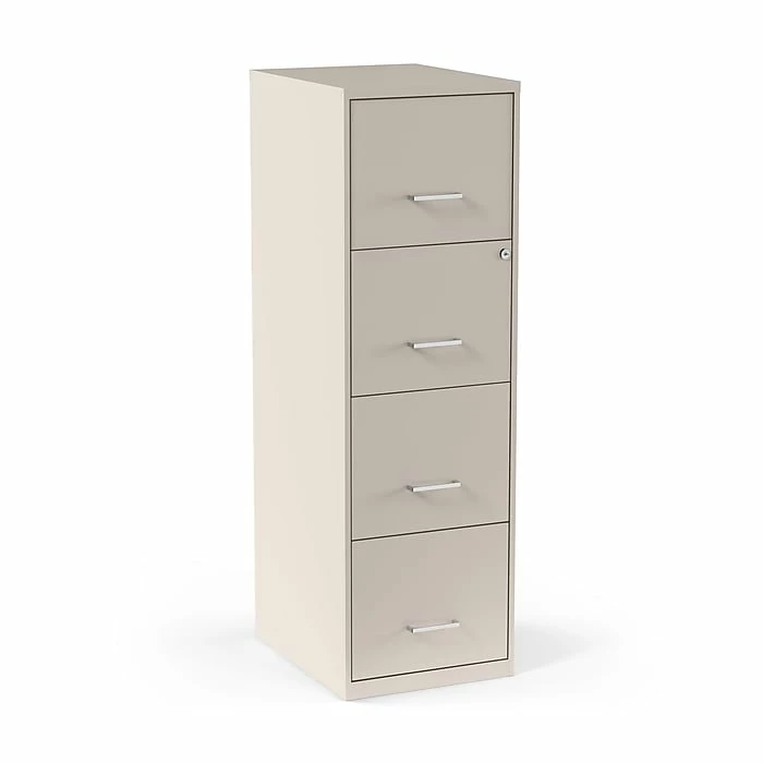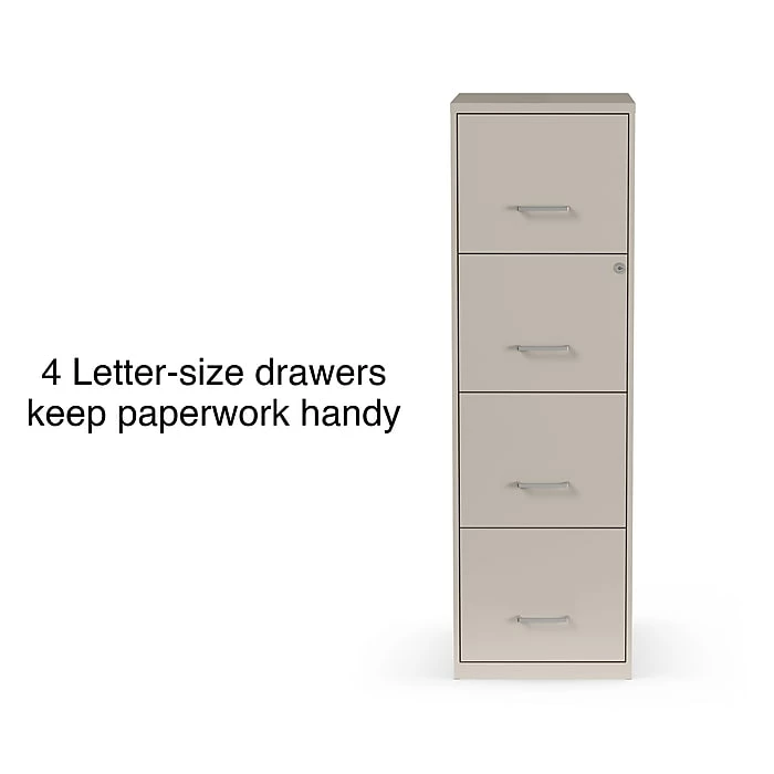 - Four-drawer light duty filing cabinet holds letter size documents