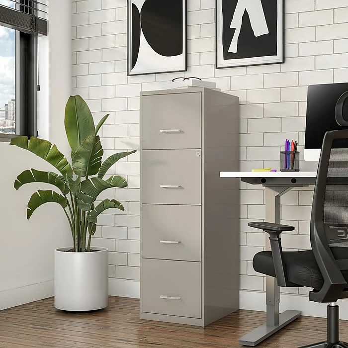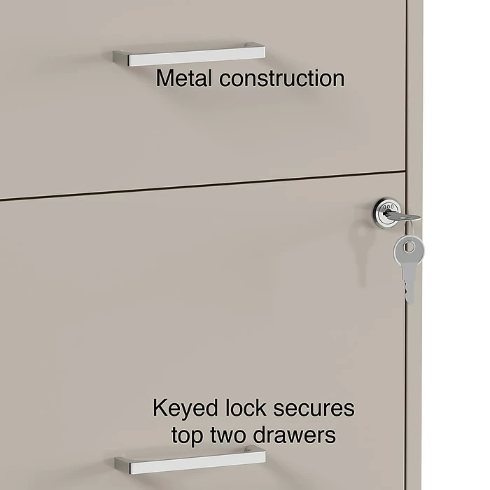 File forms, applications, reports and other documents with this light duty vertical file cabinet. A single lock keeps both drawers secure, preventing unauthorized access to sensitive documents. The four spacious file drawers offer ample storage space for important papers, and the unique design accommodates letter-size hanging folders for versatile storage options. This letter-size file cabinet features a compact size, making it a smart option for use in cubicles, home offices or other smaller work areas.