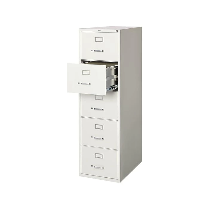 Enhance office organization, streamline recordkeeping and easily locate important documents with this vertical file cabinet. Featuring five deep drawers, this cabinet accommodates large numbers of legal-size folders and ensures stored documents stay in place with built-in adjustable wire file followers. Precision ball-bearing glides make the drawers open and close smoothly, while the built-in lock prevents unauthorized access. This legal-size file cabinet stands up to heavy use with its durable design and galvanized drawer structure.