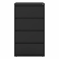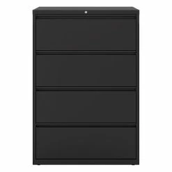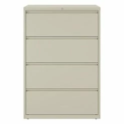 - Two-drawer lateral file cabinet holds letter- or legal-size documents