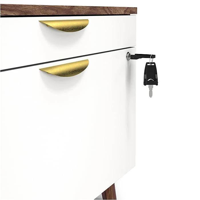 Arrange reports, invoices and other documents neatly inside this lateral file cabinet. A full-width box drawer offers ample storage for spare file folders, notepads and other supplies, while the spacious file drawer accepts letter and legal document sizes for versatile filing options. This file cabinet comes with a keyed lock and two included keys to secure important paperwork when you’re not at your desk. With a simple silhouette, this Union & Scale™ MidMod lateral file cabinet brings understated style to your workspace.
