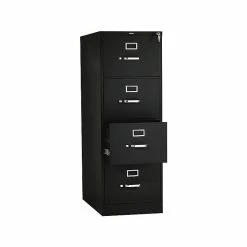 HON 310 Series 4-Drawer Vertical File Cabinet, Locking, Legal, Black, 26.5″D (HON314CPP)
