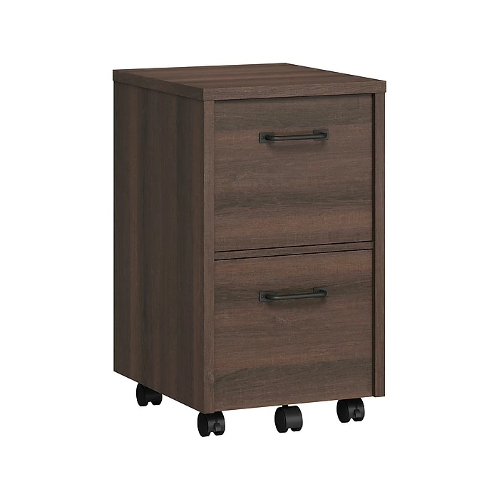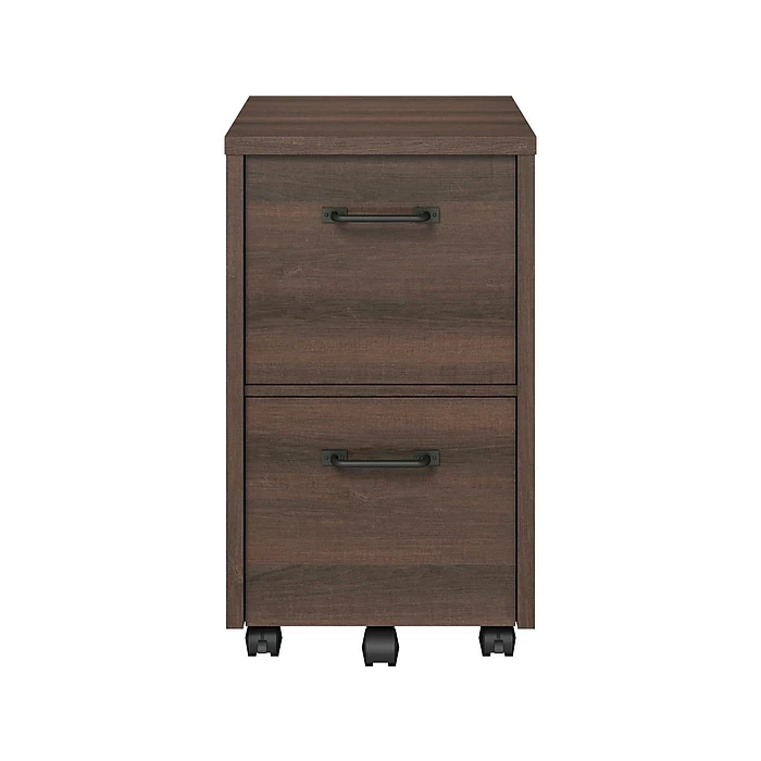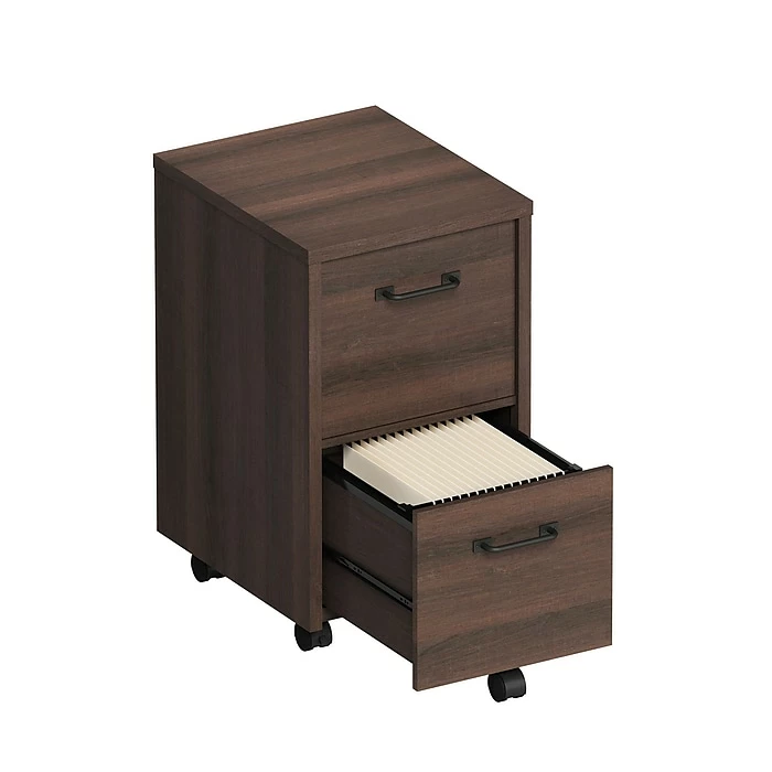 This Whalen two-drawer vertical file cabinet holds letter- or legal-size documents. It features a durable laminate construction and full-extension, ball bearing metal drawer glides.